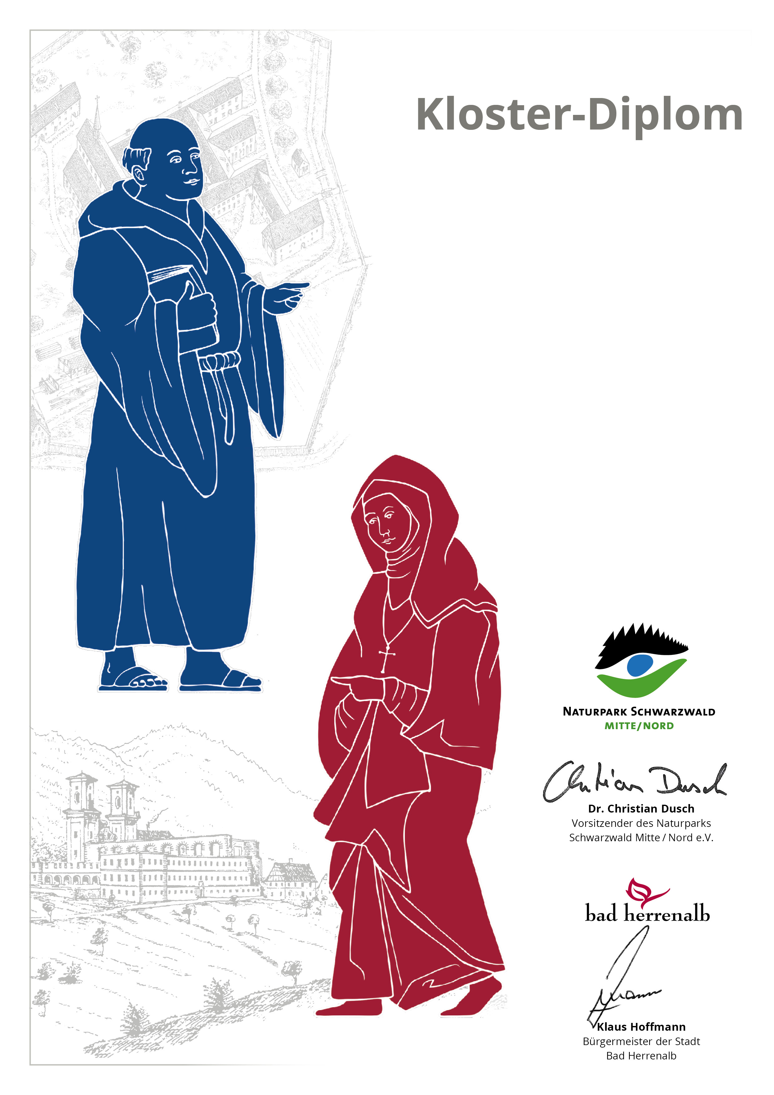 Hast du auf dem Klosterpfad alle Rätsel gelöst und alle Fragen richtig beantwortet? Dann trage hier das Lösungswort sowie Deinen Vor- und Nachnamen ein und Du erhältst Dein persönliches Kloster-Diplom als PDF-Datei zum Ausdrucken. Die Rätselbögen dazu erhältst Du bei der Tourist-Info Bad Herrenalb. Hier kannst Du auch GPS-Geräte gegen eine Gebühr ausleihen.
