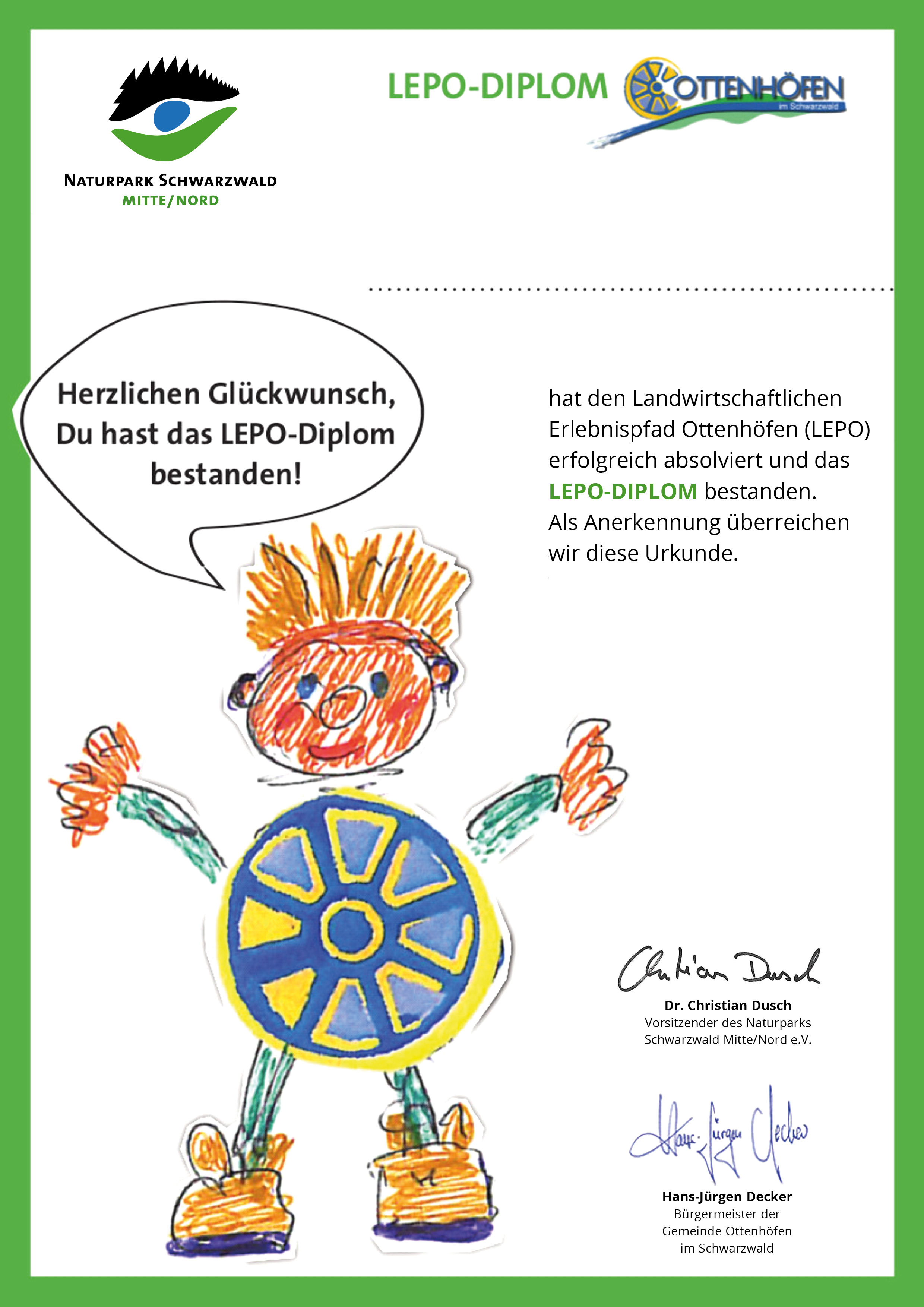 Hast Du beim Wandern auf dem Erlebnispfad in Ottenhöfen gut aufgepasst und alle Fragen richtig beantwortet? Dann trage hier das Lösungswort sowie Deinen Vor- und Nachnamen ein. Dann erhältst Du Dein persönliches LEPO-Diplom als PDF zum Ausdrucken: